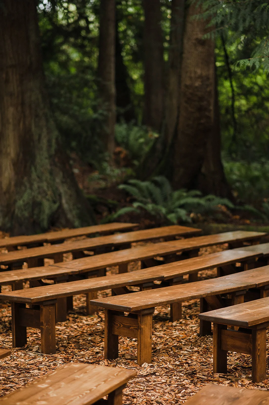 This space is what truly sets Twin Willow Gardens apart from all other wedding venues in Washington. This clearing in the middle of old growth cedars, hemlocks and maples feels a world away and gives couples a truly unique setting to exchange vows under the towering trees. We often hear ‘wows’ uttered as guests make their way from the lush gardens into the PNW ceremony in the woods. Your guests will also enjoy relaxing in the shade waiting for the ceremony to start with the natural tree canopy the landscape provides. Ceremony benches and the large ceremony arbor are included in this space.